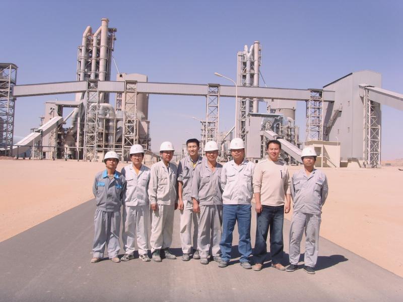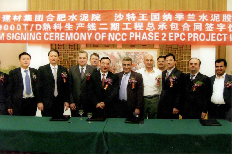 2005年7月20日,合肥院與沙特NAJRAN水泥公司簽訂了6000td水泥熟料生產(chǎn)線合同。這是合肥院承接的第一個(gè)EPC模式的總承包工程,是當(dāng)時(shí)國內(nèi)規(guī)模最大的水泥出口項(xiàng)目,也是沙特國內(nèi)最大的水泥生產(chǎn)線工程。2006年2月,合肥院與項(xiàng)目業(yè)主沙特納吉蘭水泥公司簽訂9000tpd熟料生產(chǎn)線二期EPC合同。上圖為簽約現(xiàn)場(chǎng)合影,下圖為合肥院施工人員在項(xiàng)目現(xiàn)場(chǎng)合影。